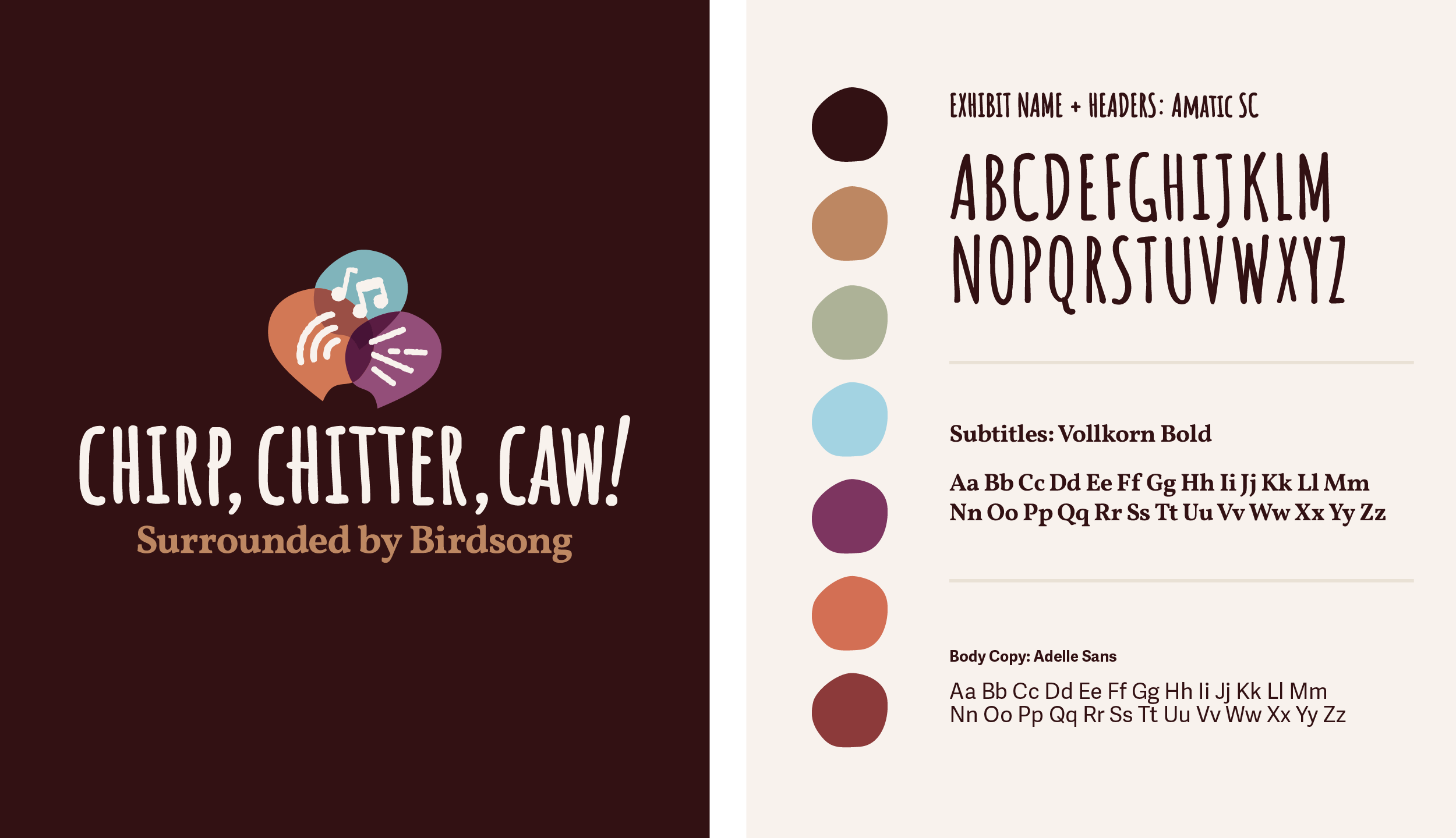 Larger hallway panels were also transformed. Existing fixtures were refreshed with a new identity and colorful graphics sporting a newly hatched exhibition name: Chirp, Chitter, Caw! Surrounded by Birdsong. The result was an elegant, warm, and welcoming environment that finally matched the joy and wonder of its subject.