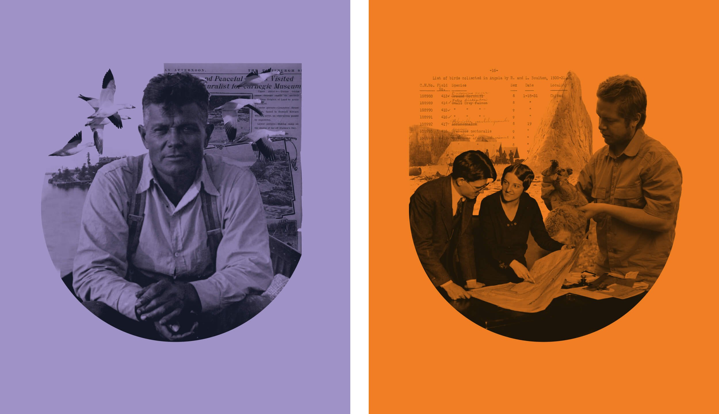 Andrew Carnegie vowed to “bring the world to Pittsburgh” when he founded the Carnegie Museum of Natural History in 1896. As the second installation of the successful The Stories We Keep exhibition series, Bringing the World to Pittsburgh tells the stories of why and how the museum has collected objects and specimens from around the world while examining the use of collections for scientific research. My goal was to evolve the visual identity that I had previously developed for the exhibition series and bring visual order to the chaotic narrative of multiple stories and varying collections. This involved expanding the color palette and injecting vibrant color treatments into historic images to bridge the gap between past and present museum collection expeditions.