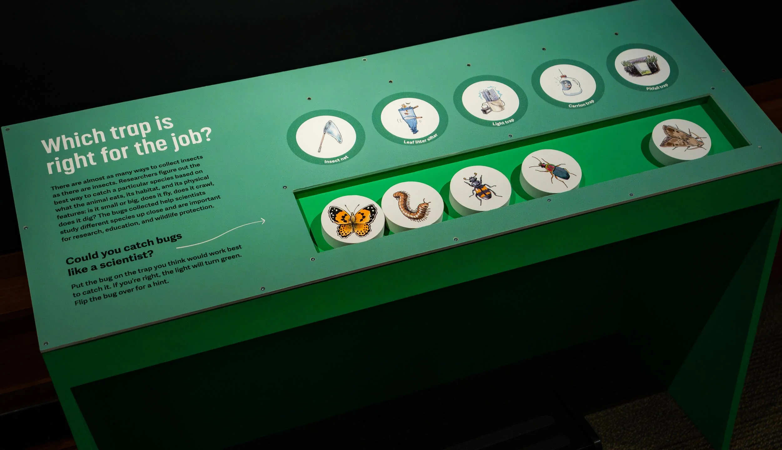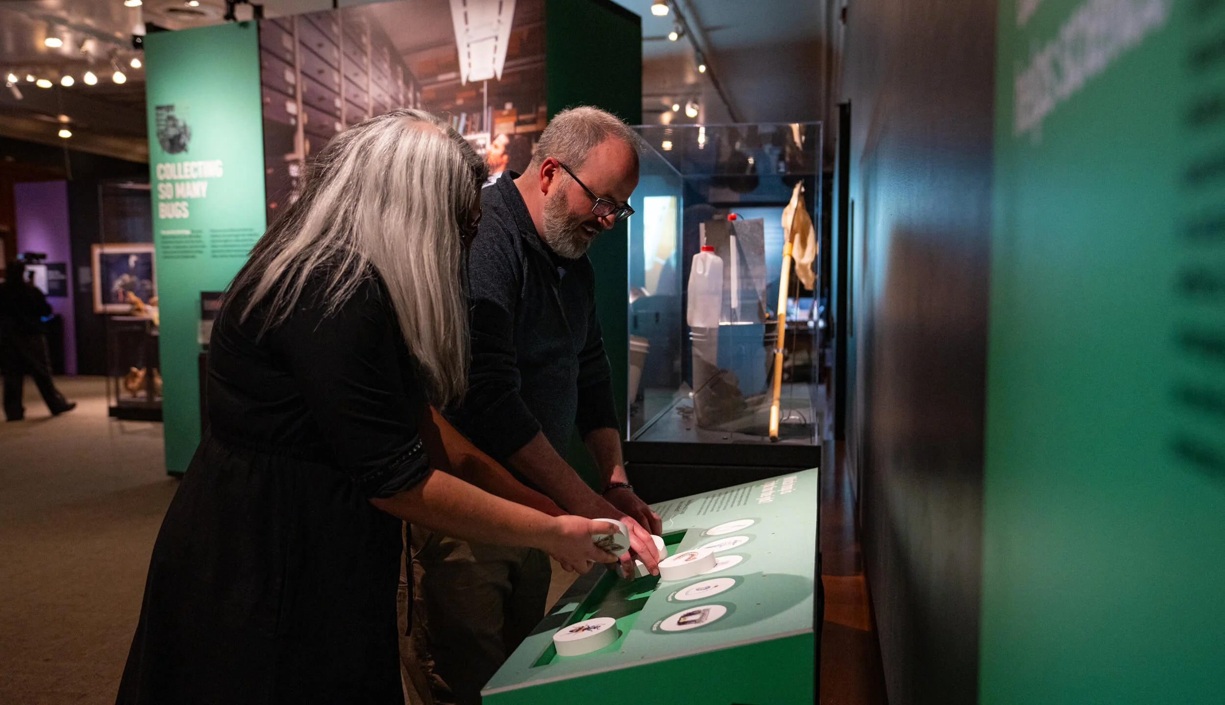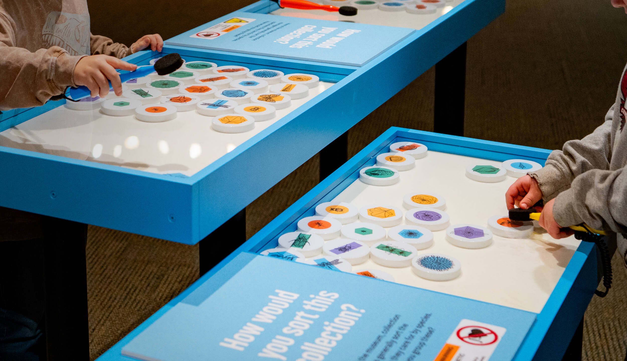 The exhibit is rich in multiple interactive elements to be enjoyed by visitors of all ages and abilities. Visitors can sort collection objects, open crates containing rare fossils, listen to sound bytes from the museum’s podcast, and even write about their own collections – all supported by thoughtful design.