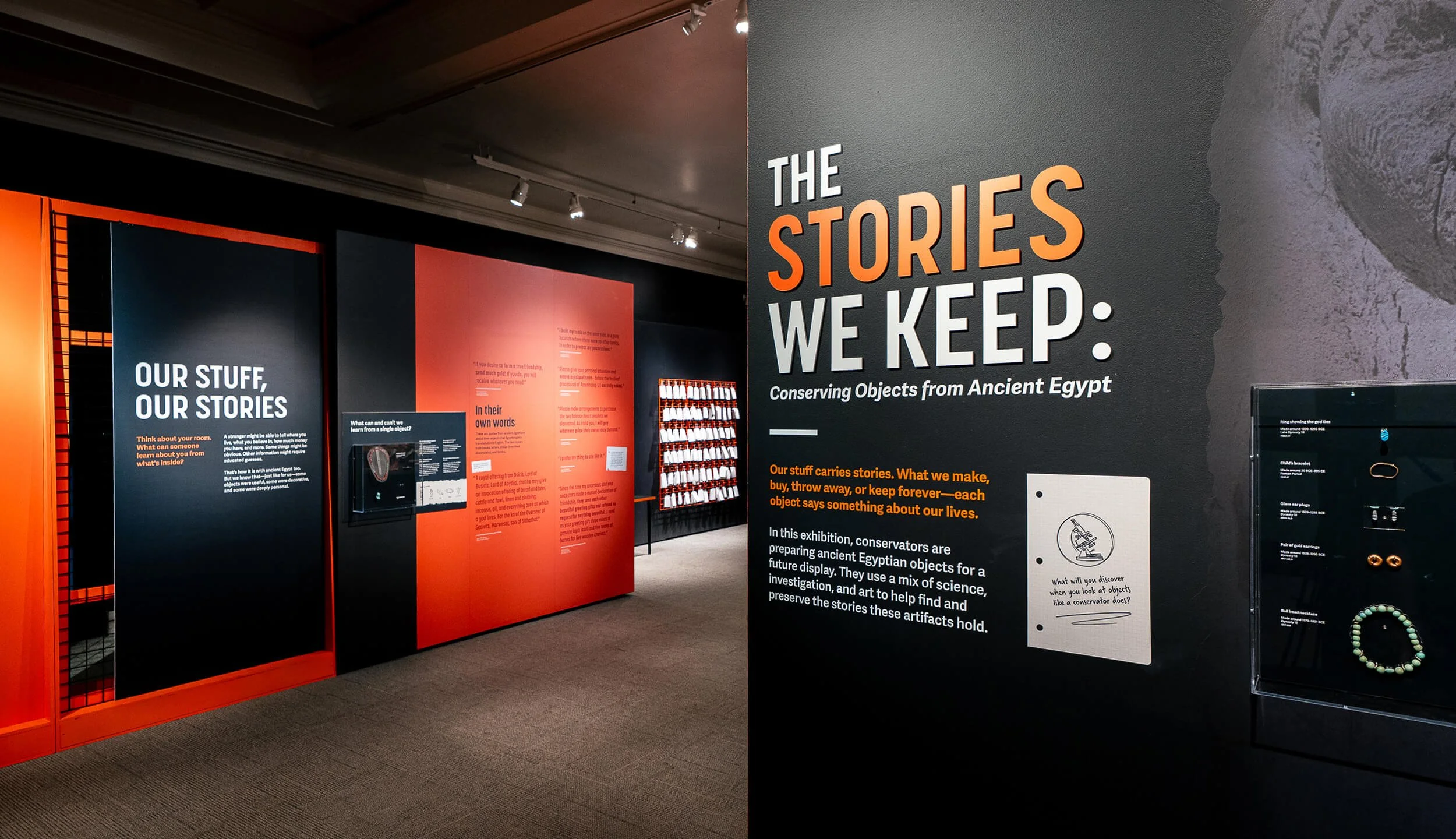 The Stories We Keep: Conserving Objects from Ancient Egypt was a dynamic temporary exhibit at Carnegie Museum of Natural History on view from March 2024 to September 2025. It focused on the origin stories of historic objects while emphasizing the critical role of museum conservators and their efforts at artifact preservation. By pairing ancient items with modern counterparts, the exhibit encouraged reflection on what we leave behind and how objects preserve the essence of human life across millennia.